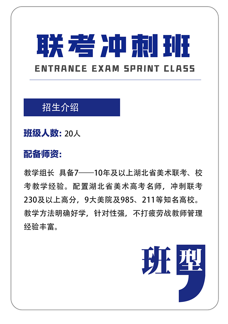 专业集训期间实行专业+文化双轨制,文化课聘请湖北省知名机构名师进行针对性教学。科学制定,合理安排让文化专业学习两不误。